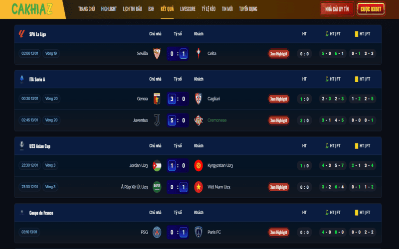 Cakhia Link là địa chỉ cập nhật KQBD trực tuyến đáng tin cậy